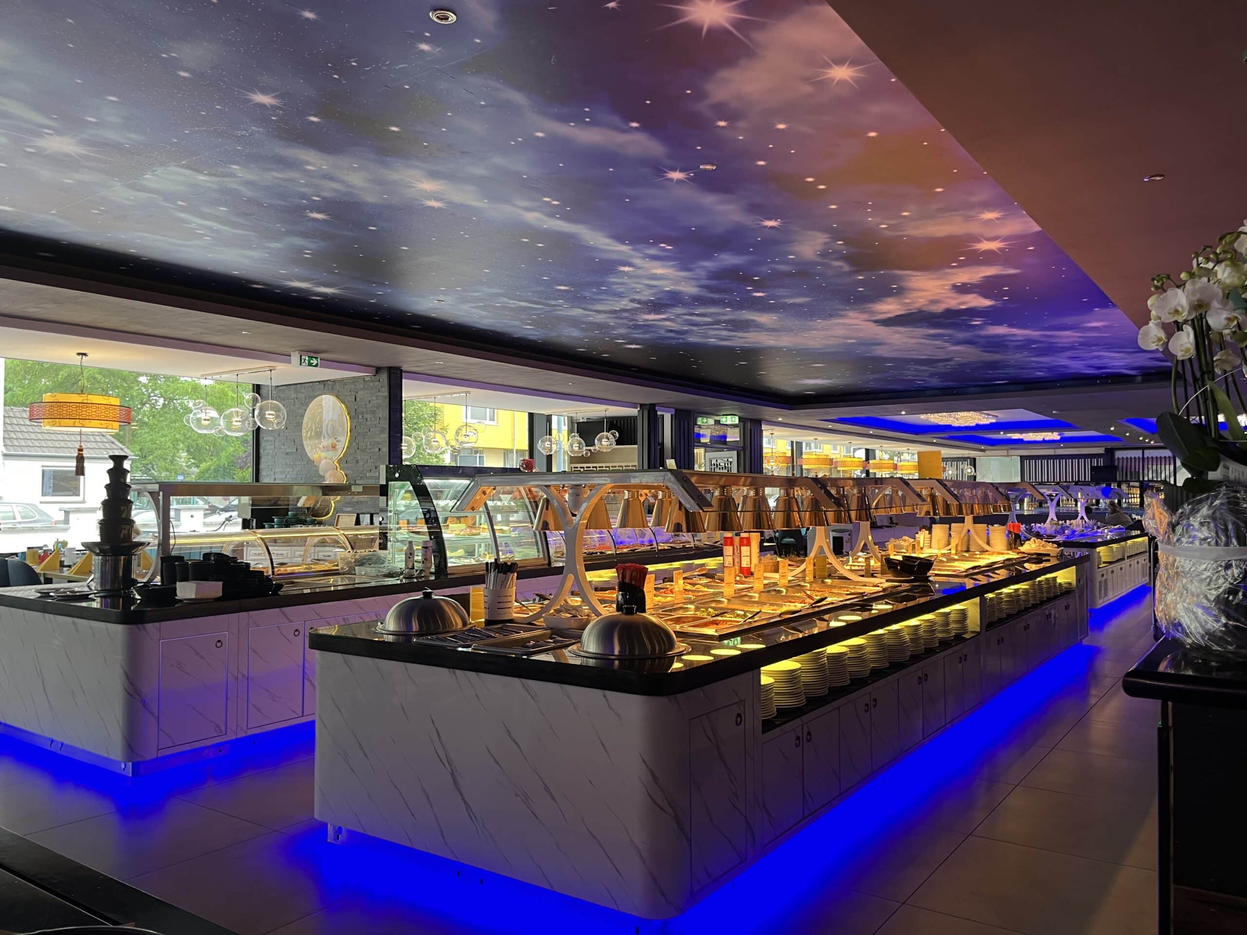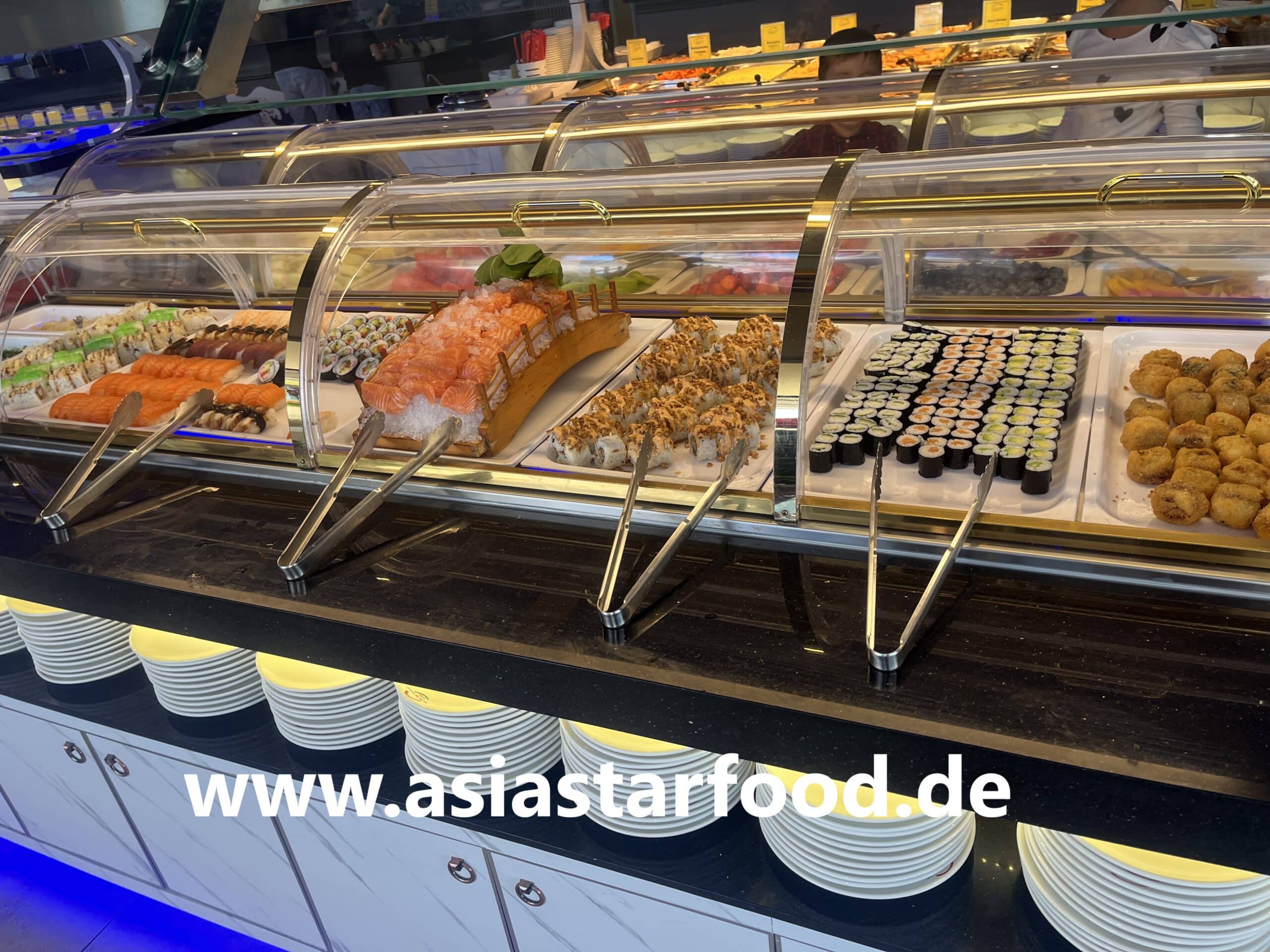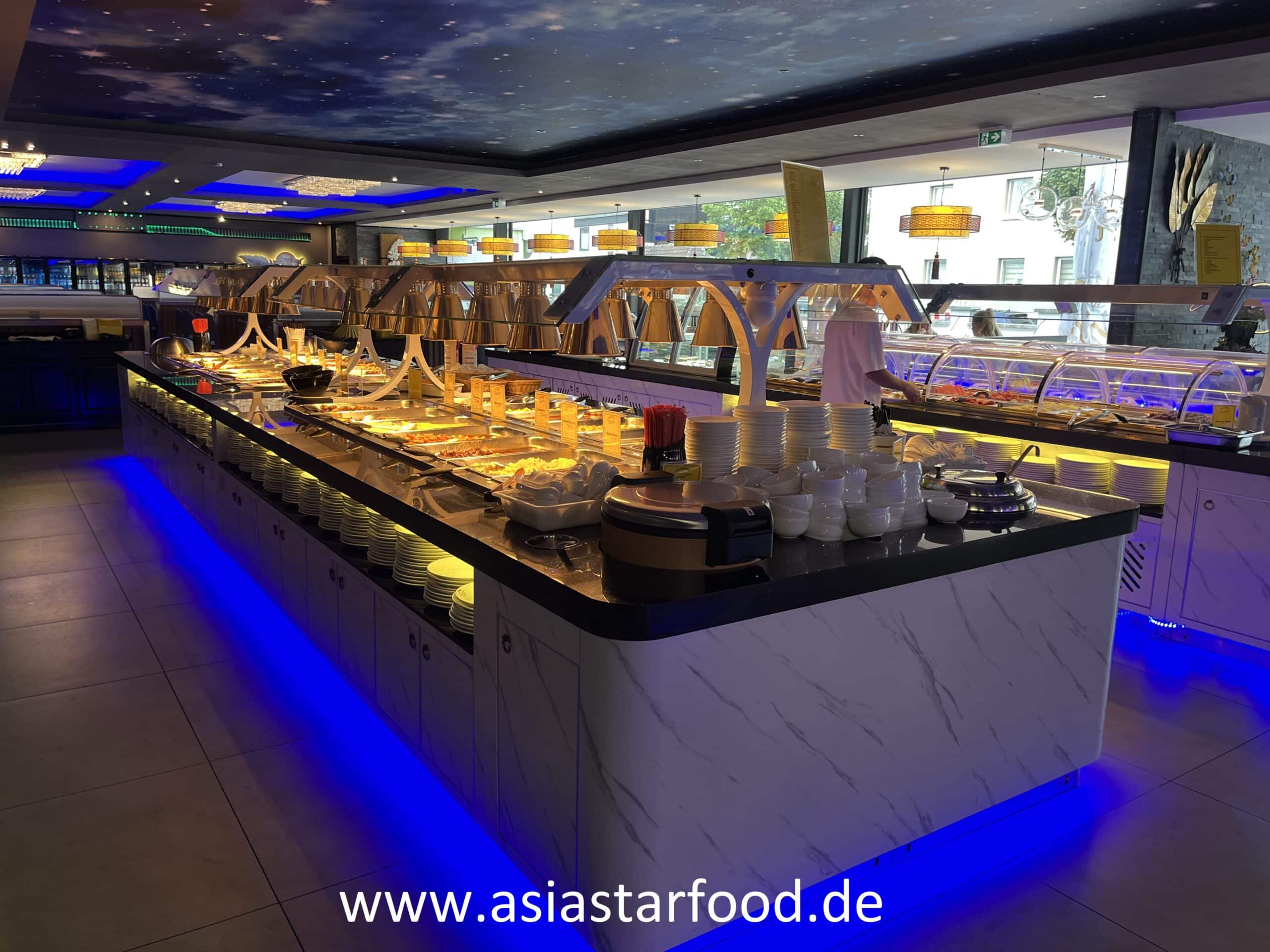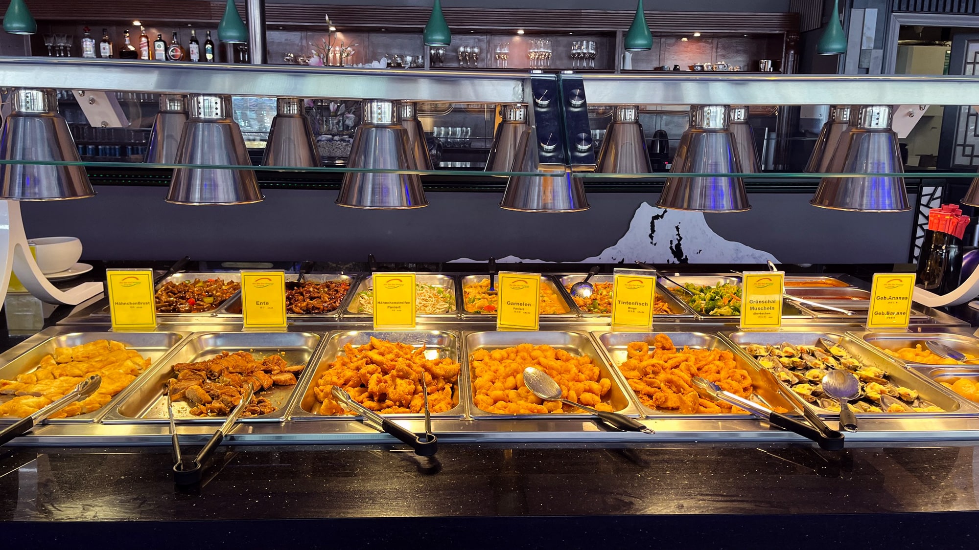 Unser Buffet umfasst eine breite Palette von köstlichen Speisen, die sorgfältig zubereitet und präsentiert werden, um Ihre Sinne zu verwöhnen. Beginnen Sie Ihre Mahlzeit mit einer Auswahl an leichten Vorspeisen, herzhaften Suppen und knackigen Salaten, die mit einer Vielzahl von asiatischen Aromen und Gewürzen verfeinert sind.